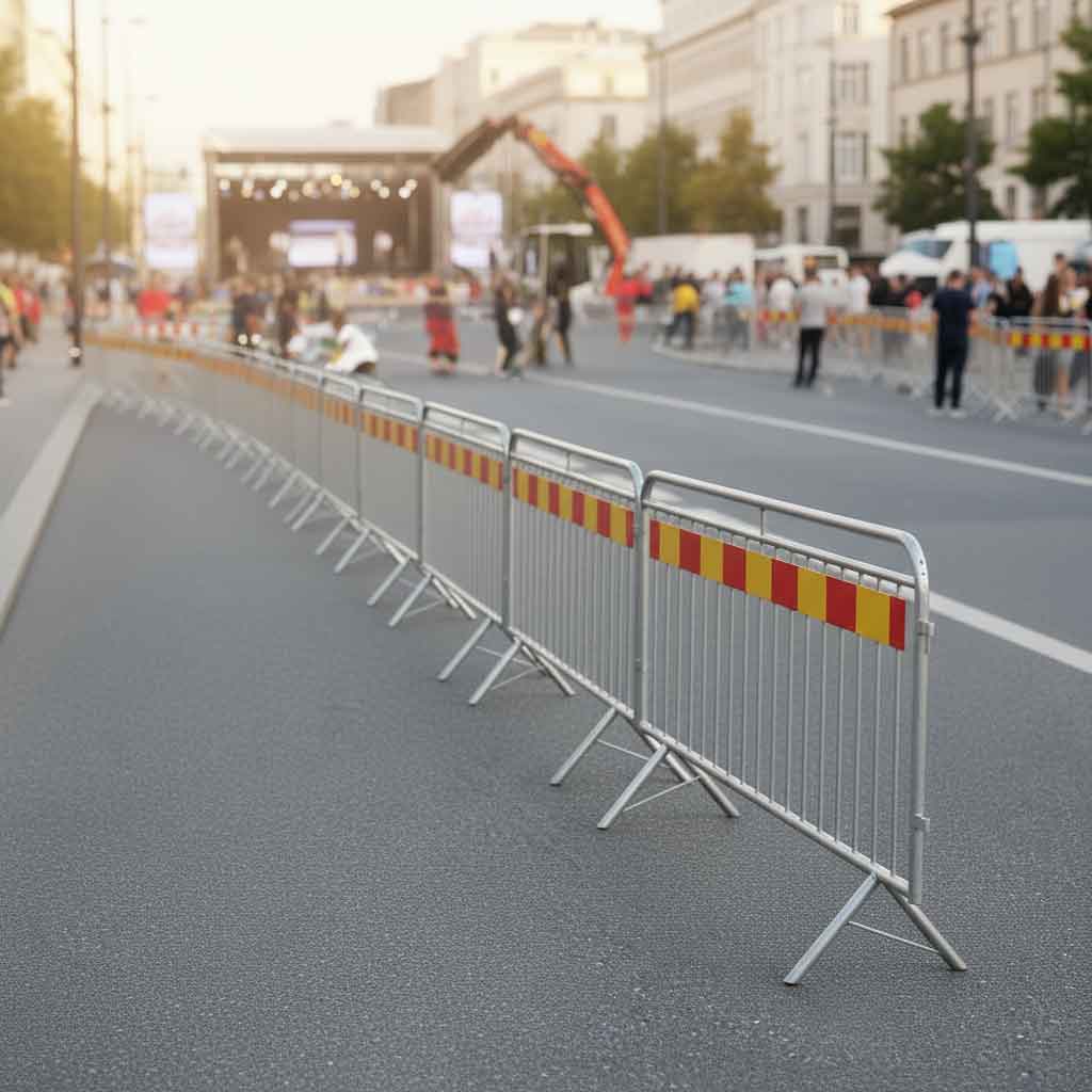 Tack vare den genomtänkta konstruktionen går uppsättningen snabbt. Kravallstaketet kopplas enkelt ihop med hake och ögla. Du kan vinkla staketet efter behov och forma barriärer som passar platsen. Det passar lika bra på byggarbetsplatser som vid konserter, idrottsevenemang eller mässor.